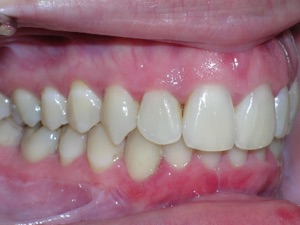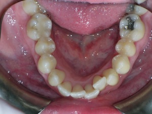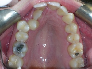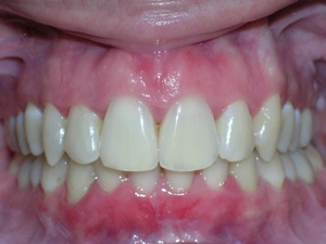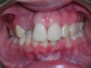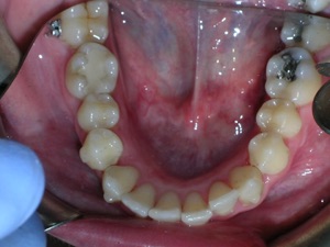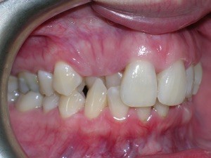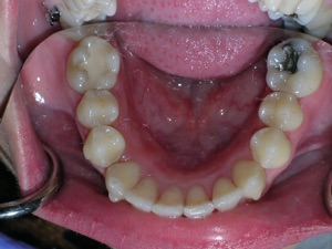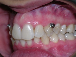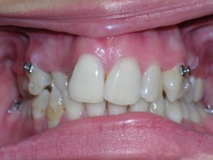 Needless to say, we were both quite happy with the outcome. Using elastics we were able to push back the back teeth and create space for the two teeth stuck behind.