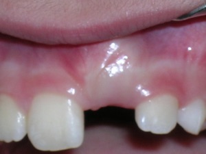 Here’s an interesting case of an impacted (stuck) upper front tooth. It is often not clear why this happens.