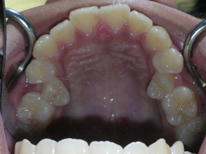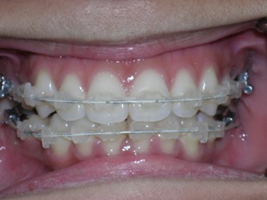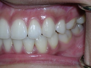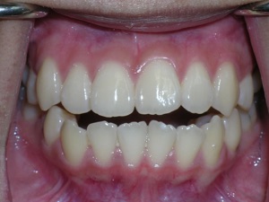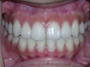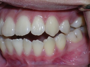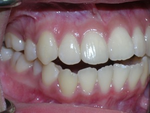 So here’s a case of an open bite, with a protrusion. There was a fair degree of crowding as well.