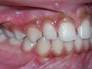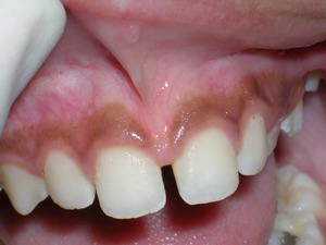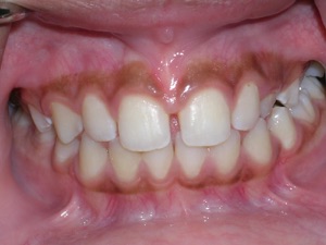 his is a young lady who presented with a space between her front teeth. There was a string of tissue (known as a frenum) which was prominent.